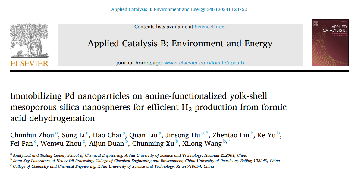 近日,我校分析测试中心周春辉博士/化工与爆破学院胡劲松教授团队在热催化甲酸分解制氢领域取得进展,研究成果相继在催化类顶尖期刊Applied Catalysis B: Environmentand Energy(IF: 22.1)和Journal of Catalysis (IF: 7.3)连续报道。